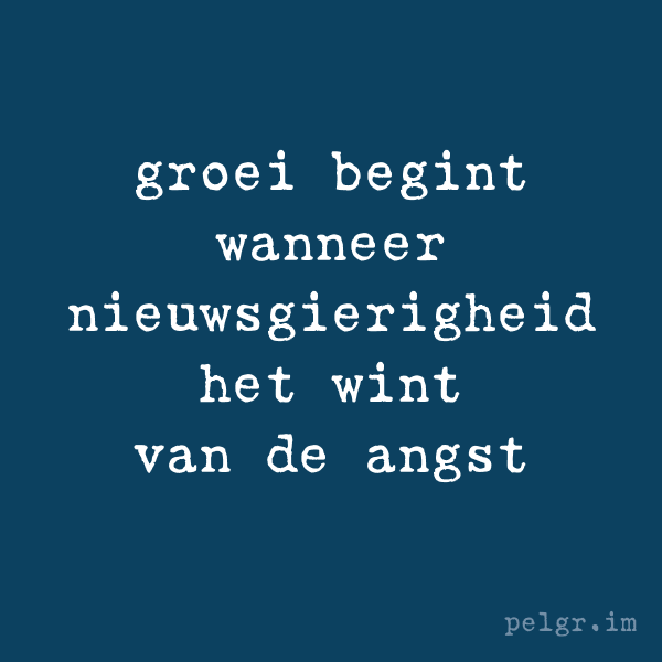 Je kunt die angst gaan dempen met pillen en de angst geen ruimte of tijd geven en andere maniertjes vinden om de angst te laten zijn voor wat het is en ermee te leren leven. Dat kan. Dat is een optie. Maar daarmee win je niks. De angst wordt niet overwonnen. Jij en dat waar je angst voor hebt blijven bestaan. Blijven gelijk. Je blijft het op dezelfde manier aanvliegen allemaal. Er moet iets veranderen. Jij of dat waarvoor jij angstig bent.