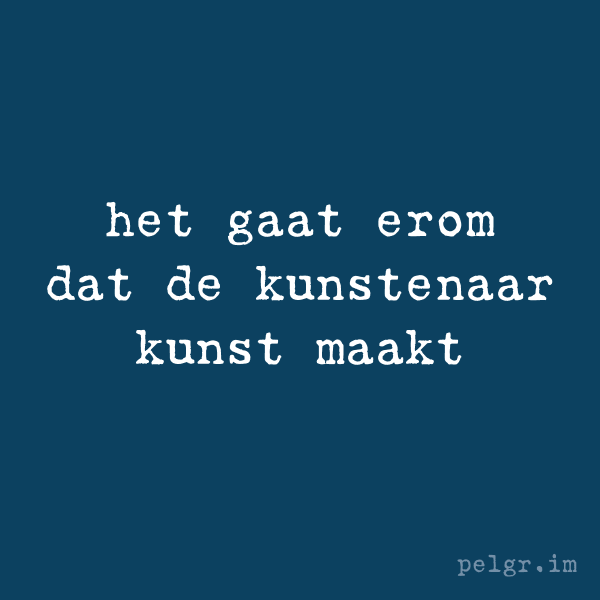 Het gaat niet om de kunstenaar. Het gaat om zijn kunstwerk. Geef de kunstenaar ruimte om zijn kunstwerk te maken. De wereld heeft hem nodig. Elke dag weer.